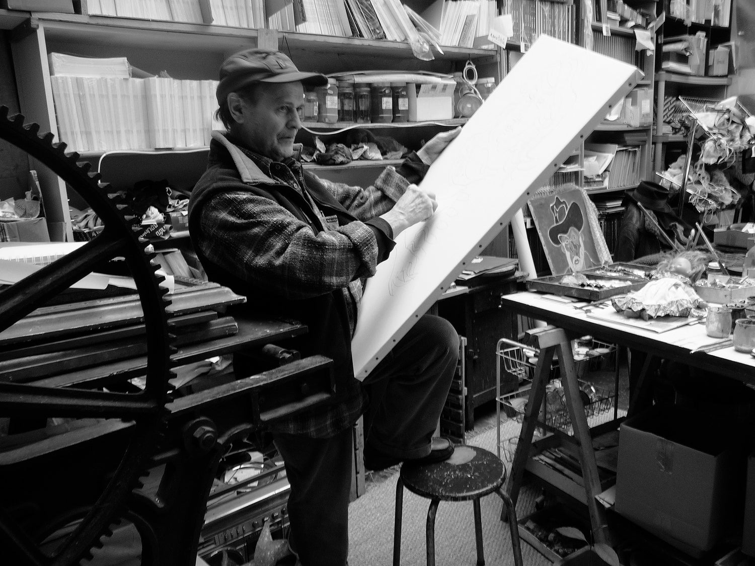 C'est à l'atelier Lacourière-Frélaut qu'il apprend l'art exigeant de la gravure. Il y côtoie Buffet, Picasso, Alechinsky ou encore Miró.